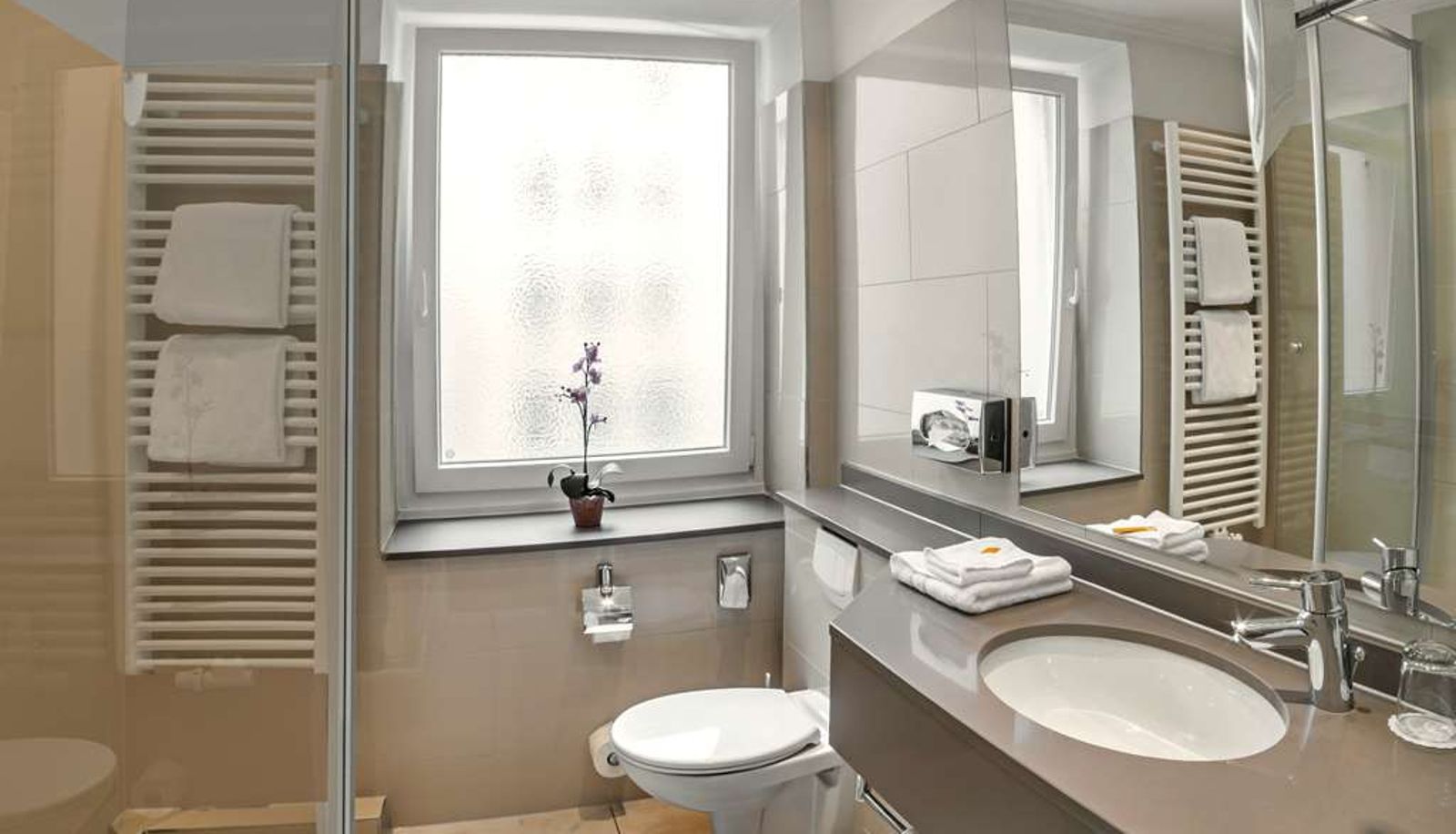 This 4-star hotel, renovated in 2016, is located at Munich Central Station. The pedestrian zone with the best shopping opportunities is less than a 5-minute walk away. We welcome you to the heart of Munich! The Oktoberfest is also within a 10-minute walk. Enjoy our bar and the courtyard terrace during the summer. The rooms are designed in a Bavarian-modern style. Soundproof doors and windows ensure a peaceful night's sleep. Our newly renovated rooms feature individual air conditioning, entertainment with LED TVs, and speakers in the bathroom. Please note that our standard rooms do not have their own air conditioning. You can enjoy free high-speed Wi-Fi. The elegant bathrooms offer exclusive toiletries as well as an XXL shower or bathtub.